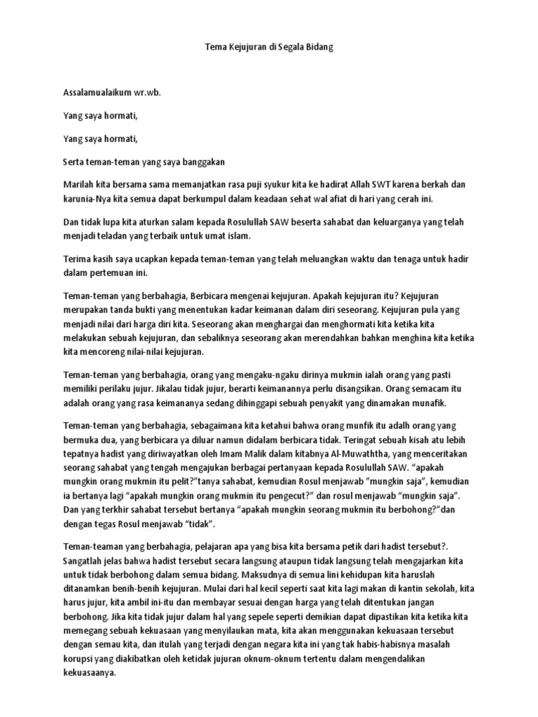 Contoh pidato tentang kejujuran adalah kunci kesuksesan. Dhono wareh contoh naskah pidato tentang kejujuran yukkk belajar membuat naskah pidato tapi kali ini naskah pidato kejujuran biasanya sih ini buat anak smp atau sma tapi tak apalah yang terpenting kita akan belajar bersama dalam contoh pidato tentang kejujuran adalah kunci kesuksesan contoh pidato kejujuran dalam artikel ini tentunya bisa sedikit membantu adek adek yang sedang belajar. Contoh pidato tentang kejujuran. Pendengar agar berbuat sesuatu. Akan saya berikan contoh teks pidato singkat tentang kunci suksespidato tentang kunci sukses ini bisa memotivasi kita semua agar selalu bersungguh sungguh dalam menggapai impian dan kesuksesan. Tujuan saya membuat pidato tentang disiplin selain untuk memperoleh nilai tugasjuga. Berarti dengan begitu kita telah mengetahui bahwa perilaku yag kita tunjukan kepada orang lain pun akan memengaruhi kesuksesan kita.