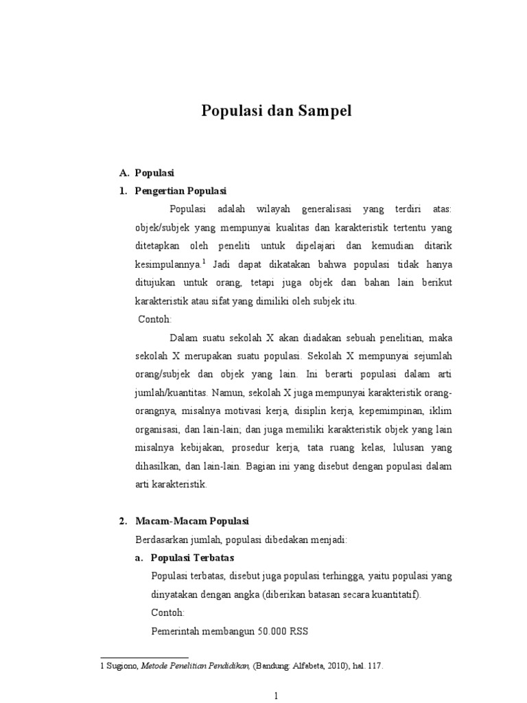 Yang dimaksud wilayah general adalah wilayah yang terdiri dari subjek dan objek yang memiliki karakter dan kuantitas tertentu dan sudah ditetapkan oleh peniliti agar bisa dipelajari. Sampel adalah sebagian dari jumlah dan karakteristik yang dimiliki oleh populasi tersebut. Contoh populasi dan sampel pengertian macam jenis sifat dan tehniknya hallo sahabat pembaca yang budiman pada kesempatan kali ini kita akan membahas makalah mengenai contoh populasi dan sampel pengertian macam jenis sifat dan tehniknya lengkapuntuk itu mari langsung saja kita simak uraian materinya dibawah berikut ini. Contoh populasi dan sampel penelitian populasi dan sampel biasanya digunakan dalam memberikan penjelasan mengenai batasan yang digunakan peneliti dalam menentukan responden. Jadi setiap orang yang datang di urutan 102030 dan seterusnya maka itulah yang dijadikan sampel penelitian. Sukmadinata 2013250 251 menyatakan populasi merupakan kelompok besar dan wilayah yang menjadi lingkup penelitian.