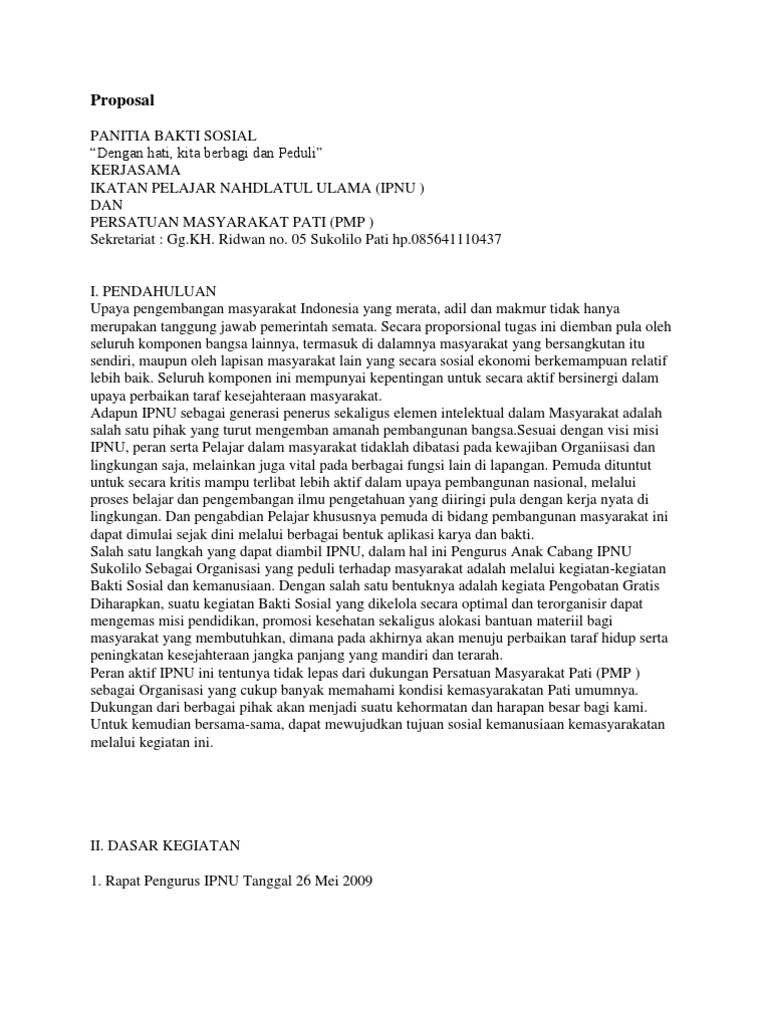0900 sd selesai btempat kegiatan bakti sosial ini akan dilaksanakan di balai desa ciangsana kab. Proposal ini disusun bertujuan untuk melaksanakan kegiatan bakti sosial dan dapat memotivasi masyarakat dan pengunjung agar selalu menjaga kebersihan. Contoh proposal bakti sosial sekolah. Kualitas generasi muda kita merupakan cerminan masa depan bangsa. Academiaedu is a platform for academics to share research papers. Waktu dan tempat kegiatan awaktu hari dan tanggal.