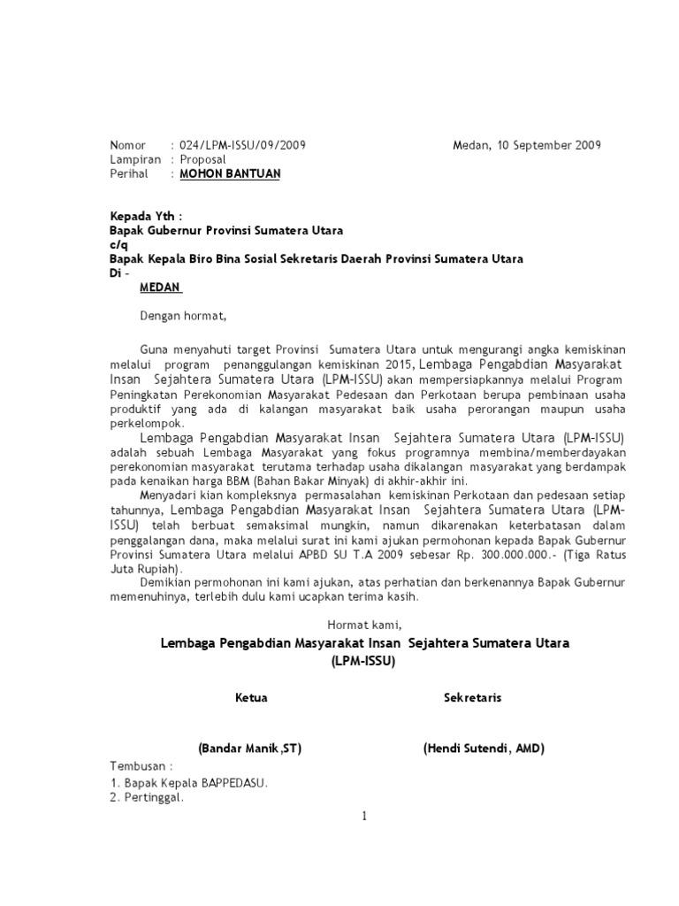 Contoh proposal bantuan dana pada umumnya struktur pembuatan proposal bantuan dana hampir sama untuk semua jenis kepentingan. Unsur yang perlu dicantumkan dalam pembuatan proposal tersebut antara lain surat pengantar dari pihak yang mengajukan judul proposal pendahuluan atau latar belakang maksud dan tujuan pelaksanaan kegiatan penutup dan lampiran lampiran. Proposal seperti itu sering digunakan dengan tujuan meminta dukungan dalam mensukseskan kegiatan kegiatan yang di adakan dan masalah pendanaan. Proposal pengajuan dana ke pt biofarma. Contoh proposal yang paling sering dibuat tidak hanya dalam kalangan organisasi tetapi dilingkungan sekolah juga sering membuat proposal untuk kegiatan dalam lingkup sekolah seperti proposal kegiatan pentas seni pensi.