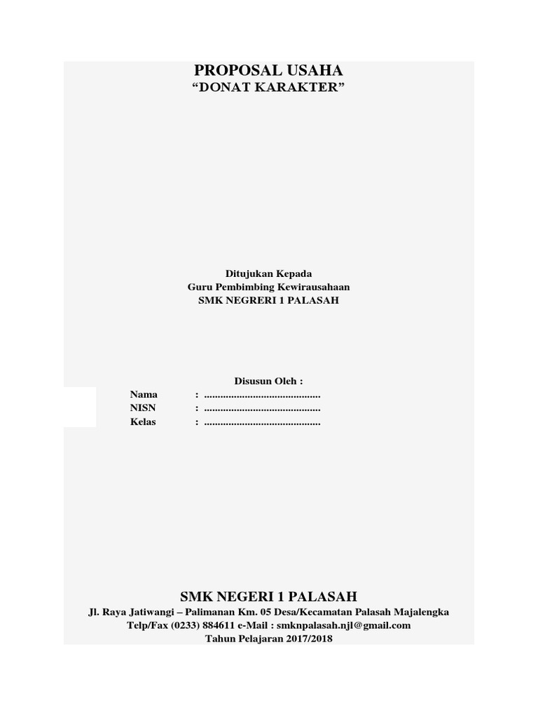 Contoh proposal kewirausahaan smk. Yang bisa digunakan untuk melengkapi administarsi guru yang dapat di unduh secara gratis dengan menekan tombol download. Disamping itu proposal ini dimaksudkan agar siswa dapat mengembangkan kemampuan kewirausahaannya. Shofi asriani xii tkj 1 smk bina nasional informatika slideshare uses cookies to improve functionality and performance and to provide you with relevant advertising. Contoh proposal kewirausahaan bagi kalian yang mungkin tengah mencari contoh proposal makanan untuk memenuhi tugas mahasiswa ataupun untuk pengajuan proposal usaha pribadi. Academiaedu is a platform for academics to share research papers. Contoh format administrasi guru lengkap.