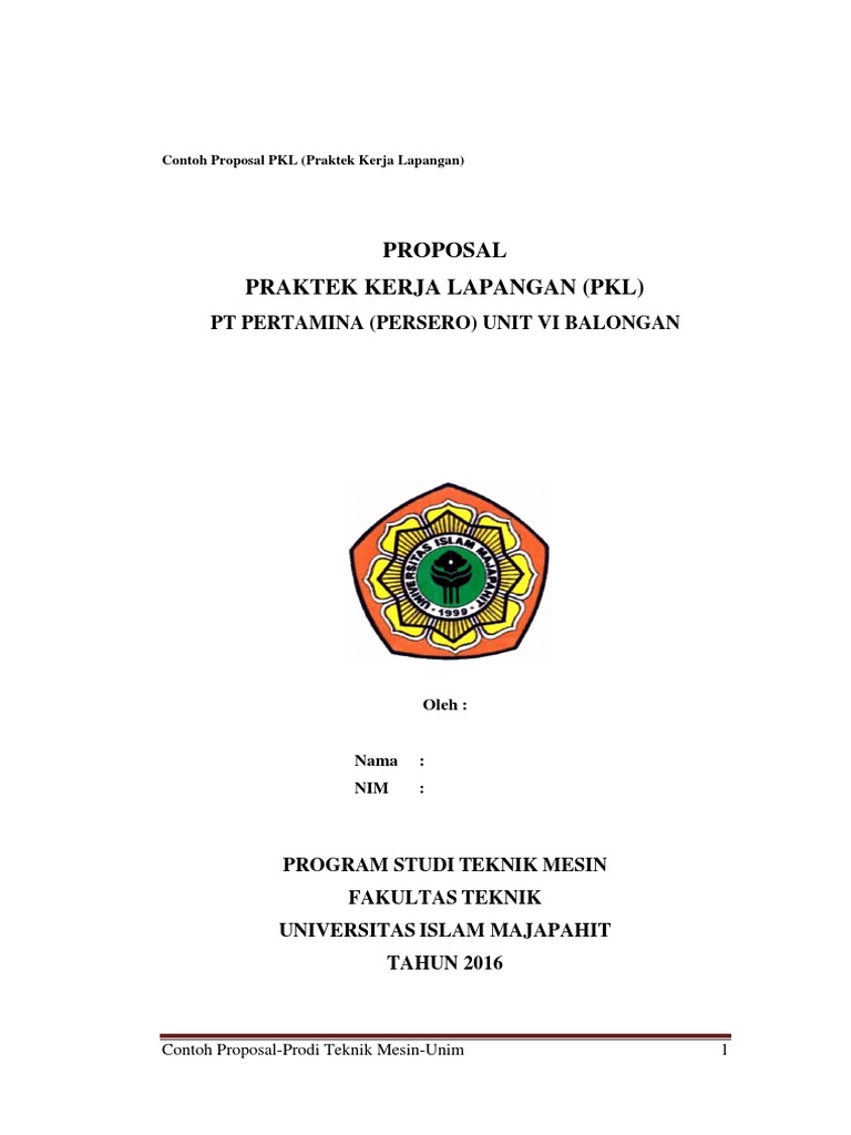 Ari hayati mp logo kampus oleh. Jurusan biologi lingkungan. Jalan veteran iii banjar waru ciawi bogor jawa barat. Contoh proposal praktek kerja lapangan proposal tugas akhir. Praktik kerja lapangan pkl atau yang dulunya biasa disebut prakerin praktek kerja industri adalah salah satu bentuk implementasi secara sistematis dan sinkron antara program pendidikan di sekolah dengan program penguasaan keahlian yang diperoleh melalui kegiatan kerja secara langsung di dunia kerja untuk mencapai tingkat keahlian tertentu pkl adalah suatu proses pembelajaran dan pelatihan. Praktek kerja lapangan pkl merupakan mata kuliah wajib bagi mahasiswa prodi manajemen sebagai kelengkapan dalam satu kesatuan penyelesaian studi di stie asia malang.