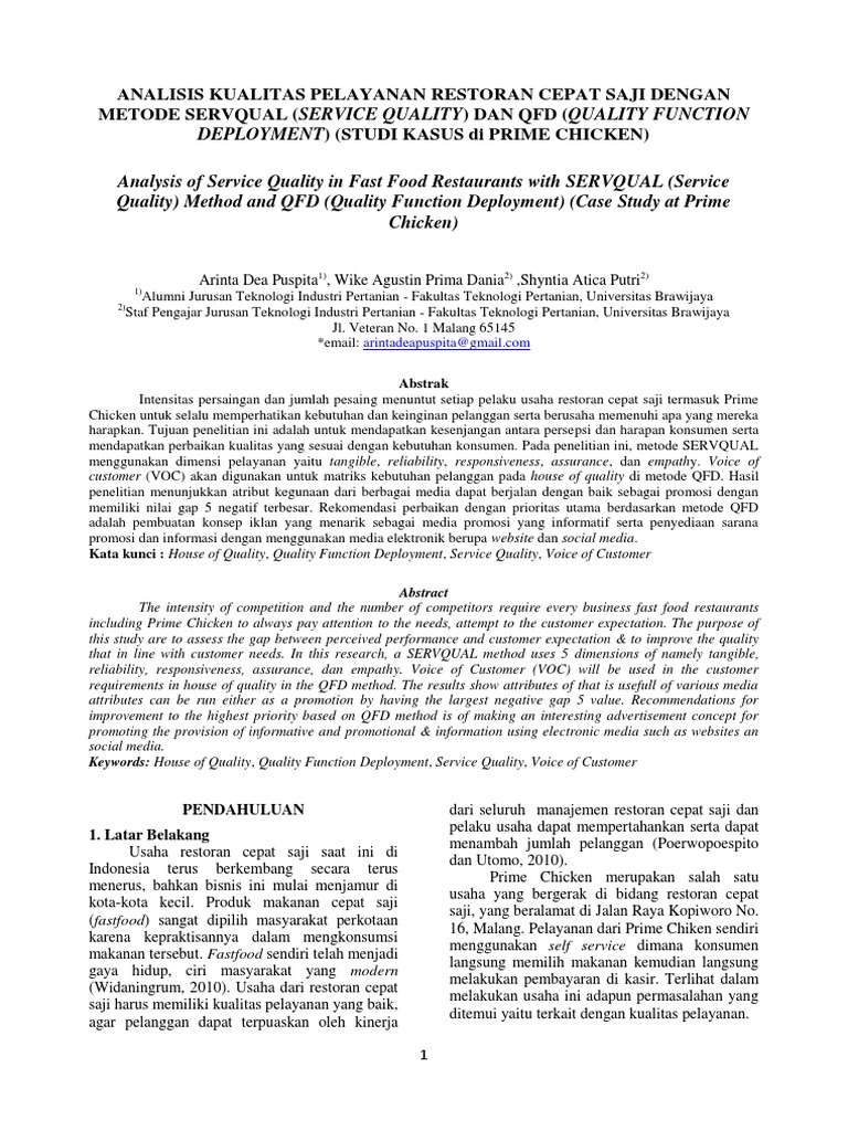 Quality function deployment konsep qfd muncul di jepang pada akhir 1960an. Tujuannya untuk menawarkan suatu produk kepada pembaca atau orang yang melihat iklan tersebut. Dari segi pelanggan kualitas suatu produk merupakan hal yang harus ada di dalam suatu produkkhususnya produk makanan yang memiliki lifetime pendek.