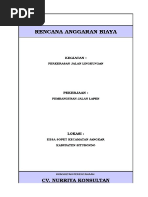 Contoh rab jalan lapen xls. Design dan rab gorong gorong buis beton apbdes kode dj260639xls. Rab jalan lapen desa sopetxls. Contoh rab jalan di blog ini adalah dalam bentuk file microsoft excell format xls xlsx yang telah saling ter link antara file filenya sebagai referensi ataupun untuk menjadi file dasar yang dapat diedit sesuai kebutuhan dalam membuat sebuah rencana anggaran biaya untuk pembangunan jalan baik itu rab jalan aspal rab jalan beton rab jalan raya rab jalan hotmix rab jalan lingkungan. You are on page 1 of 284. Rab jalan lapen desa sopetxls untuk nanti 18 18 mendukung tandai dokumen ini sebagai bermanfaat 3 3 menolak tandai dokumen ini sebagai tidak bermanfaat tanamkan bagikan. Contoh rab rencana anggaran biaya desa perumahan pekerjaan pengaspalan jalan maupun perbaikan jalan berikut ini adalah contoh proposal pengaspalan jalan terbaru proposal jasa perbaikan aspal jalan yang dapat anda jadikan acuan dalam menyusun proposal semoga dapat bermanfaat.