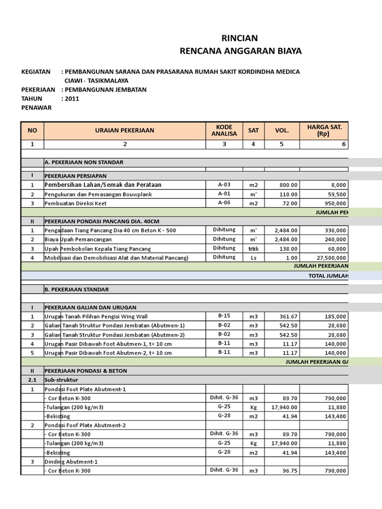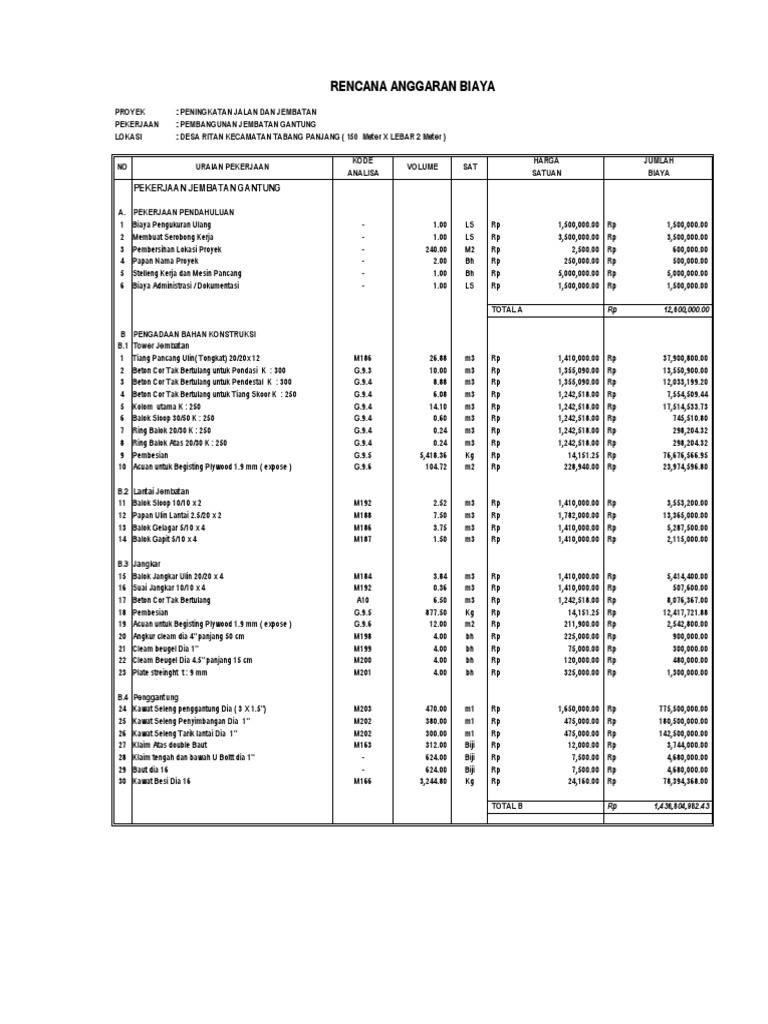 Contoh Rencana Anggaran Biaya Rab Xls Rab Bangunan Rab Jembatan Rab Jalan