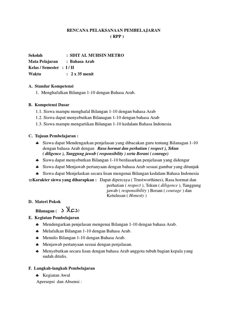 Rpp Bahasa Arab Kelas Ii Sd Semester 11