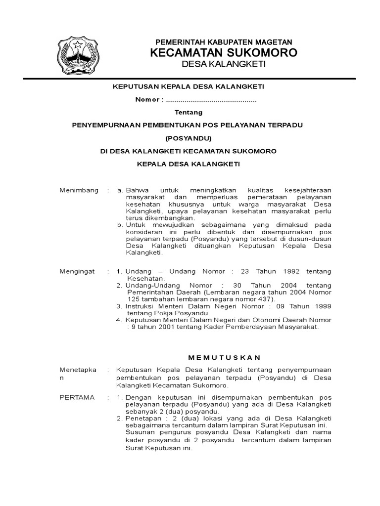Asal usul data penerima bantuan pkh. Contoh sk kades penunjukan kader posyandu lansia desa tahun 2020. Kader posyandu desa lurah. Internet desa kominfo desa masuk target program internet gratis kominfo lagi hits berikut ini blog format administrasi desa akan merangkum kumpulan format format atau contoh contoh sk kades terbaru dan terlengkap beserta lampirannya dalam bentuk format doc word dan pdf. 23 tahun 1985 nomor. Membentuk dan menunjuk nama nama kader posyandu tersebut di desa mranggen kecamatan mranggen sebagaimana tercantum dalam lampiran surat keputusan ini.