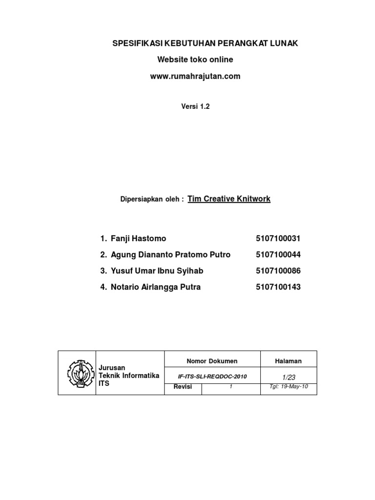 13 definisi istilah dan singkatan skpl adalah spesifikasi kebutuhan perangkat lunak atau dalam. Dalam penyusunan tugas akhir ini penulis mendapat bantuan dan dukungan dari banyak pihak. Academiaedu is a platform for academics to share research papers. Contoh spesifikasi kebutuhan perangkat lunak skpl. Budi jatmiko 6701183456 wayan budiarte 6701276549 terens papasi 6701902346 program studi manajemen informatika fakultas ilmu terapan universitas telkom bandung fakultas ilmu terapan universitas telkom nomor dokumen halaman skpl170 110. 4 skpl srmk 0004 fungsi memasukkan data mobil 5 skpl srmk 0005 fungsi lihat data penyewa 6 skpl srmk 0006 fungsi lihat data mobil 7 skpl srmk 0007 fungsi search mobil berdasarkan kriteria 8 skpl srmk 0008 fungsi melihat status mobil oleh pegawai 9 skpl srmk 0009 fungsi edit data mobil 10 skpl srmk 0010 fungsi mengubah data penyewa.