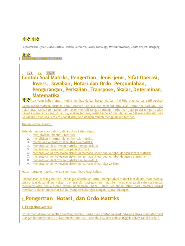 Contoh soal cerita matriks dalam kehidupan sehari hari. Pada umumnya penggunaan matriks tersebut dimaksudkan agar lebih mudah dalam penulisan dan interpretasinya. Contoh matriks dalam kehidupan sehari hari matriks merupakan suatu kumpulan dari simbol bilangan ekspresi yang memiliki bentuk persegi panjang dan tersusun sesuai dengan kolom dan barisbeberapa bilangan yang ada pada matriks ini dinamakan elemen atau anggota dari matriks. Admin blog contoh soal terbaru 2019 juga mengumpulkan gambar gambar lainnya terkait contoh soal cerita matriks dalam kehidupan sehari hari dibawah ini. Penerapan dari penjumlahan dan perkalian matriks dapat dijumpai di berbagai bidang. Berikut ini beberapa contoh penerapan operasi penjumlahan dan perkalian matriks dalam kehidupan sehari hari. Berikut ini adalah contoh soal ukk smp kelas 7 8 yang merupakan kumpulan file dari berbagi sumber administrasicontoh soalpendidikan dan guru tentang contoh soal cerita matriks dalam kehidupan sehari hari.