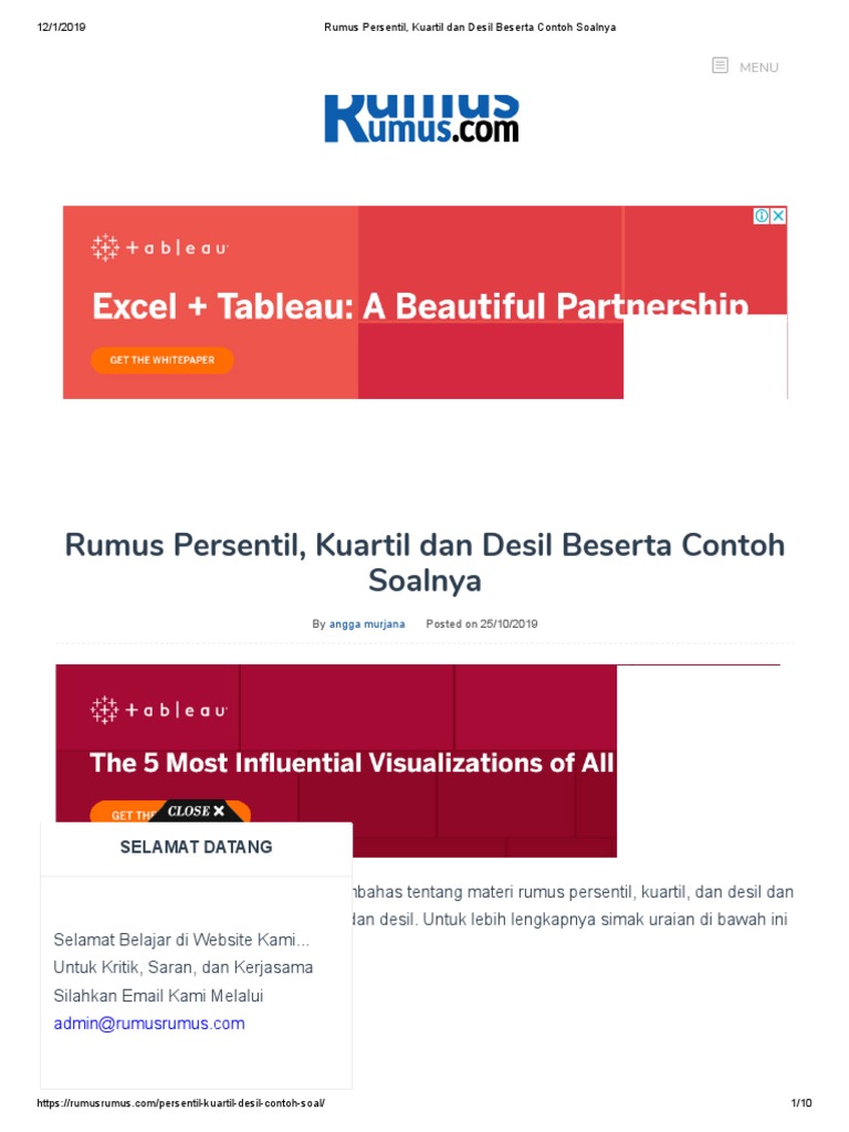 Kuartil desil dan persentil ialah sebuah metode atau cara membagi data menjadi sama banyak. Ki kuartil ke n jumlah data. I letak. P i persentil ke i i 1 2 3. Cara menghitungnya adalah sebagai berikut. Pada ukuran letak data terdapat kuartil desil dan persentil.