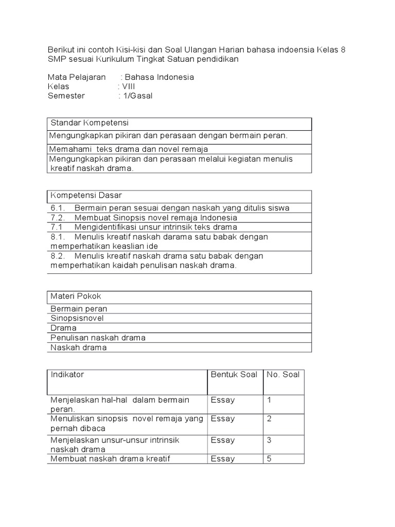 Contoh soal drama kelas 8. Guru sd smp sma soal drama kelas 8. Di artikel ini hanya tersedia beberapa soal latihan dan jawaban saja jika ingin mendownload soal latihan teks drama secara lengkap bisa menggunakan link di akhir artikel ini. Apa yang dimaksud dengan berita 2. Soal bahasa indonesia kelas 8 by azzahra rahmah posted on january 29 2020 march 31 2020 rumuscoid pada kesempatan kali ini kita akan membahas makalah materi tentang bank contoh soal bahasa indonesia kelas 8 semester 1 dan 2 serta jawabannya yang mana pada artikel sebelumnya kita sudah membahas makalah materi tentang soal bahasa indonesia kelas 7. Soal drama kelas 8. Soal bahasa indonesia kelas 7.