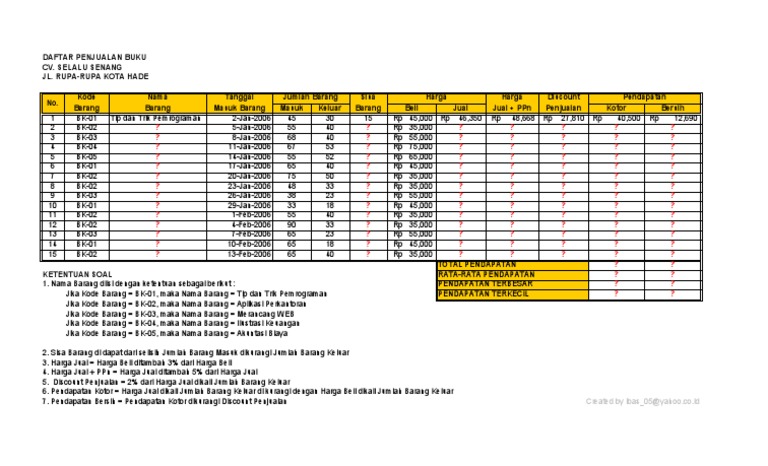 Contoh soal excel if. Contoh file download rpp silabuskikd prota promes dan kkm kelas 5 sd ktsp berikut ini adalah kumpulan dari berbagi sumber tentang contoh latihan microsoft excel yang bisa gunakan untuk administrasigoogle driveinfo gururpp ktsprpp sdsilabus dan diunduh secara gratis dengan menekan tombol download biru dibawah ini. Dalam mengerjakan contoh soal excel untuk bank excel soal 3 ini pemahaman tentang rumus if dan and harus mengerti dulu untuk logika pengerjaan soalnya. Maka saat ini kita akan membahas lebih detail tentan rumus if di excel 2007 2010 dan 2016. Diunggah oleh akhmad kahari. Kebetulan karena saya mengajar di sebuah lembaga kursus komputer di jember jadi ada banyak perbendaharaan soal yang bisa dijadikan pembelajaran buat temen temen phc yang juga lagi belajar tentang excel. Simpan simpan kumpulan latihan latihan soal excel untuk nanti.