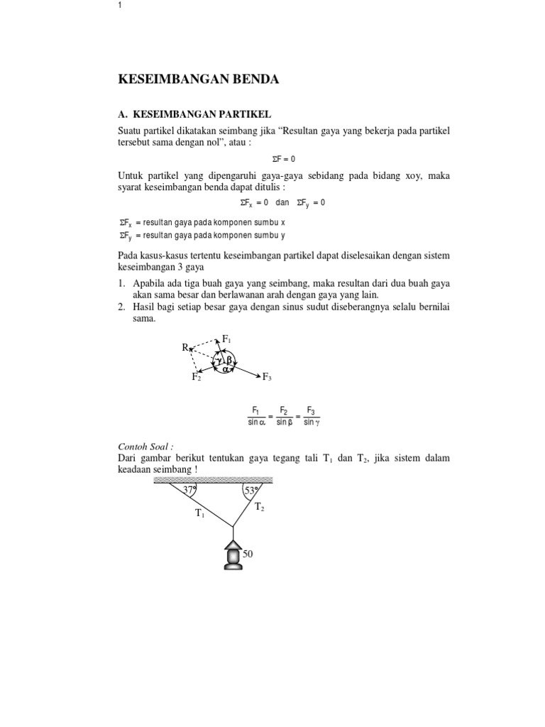 Contoh soal kesetimbangan partikel. Berikut ini contoh contoh soal terkait keseimbangan benda tegar yang bisa quipperian pelajari selanjutnya. Contoh soal kesetimbangan benda tegar. Gaya tegangan kedua tali yang menahan beban adalah pembahasan. Sebuah benda bermassa 3 kg diikat dengan tali pada langit langit. G 98 ms². Sebuah benda bermassa m berada pada sistem seperti berikut.