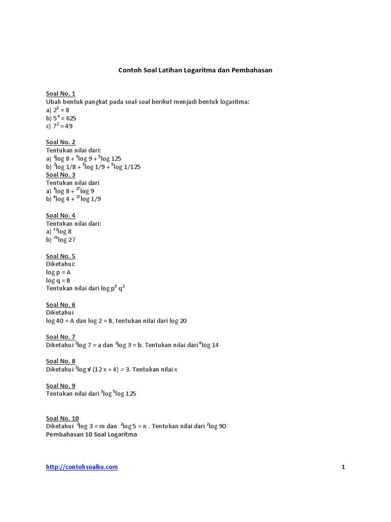 Logaritma merupakan salah satu topik matematika yang memiliki model soal dengan cakupan cukup luas dan variatif. 1 ubah bentuk pangkat pada soal soal berikut menjadi bentuk logaritma. B 0 sifat sifat logaritma 1. Soal no1 utbk 2019. Logaritma merupakan salah satu topik matematika yang dasar dasarnya telah diajarkan di tingkat menengah pertama dan akan ada pembahasan lanjutan untuk tingkat menengah atas. Meski sudah memiliki sifat sifat istimewa yang berlaku secara umum dan cenderung lebih mudah jika dibandingkan dengan topik limit dan integral akan tetapi logaritma juga memiliki tingkat kesulitan yang cukup kompleks.