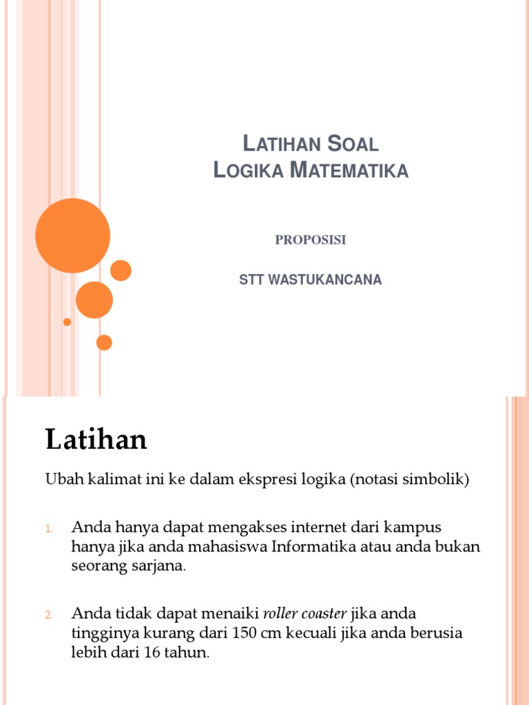Logika matematika pada pembahasan kali ini kami akan mengulas materi tentang logika matematika lengkap beserta soal dan jawabannya sehingga bisa anda jadikan sebagai referensi dan latihan dalam mempelajari matematika ataupun untuk kepentingan olimpiade. Putusan adalah pengetahuan yang dibentuk dari pengertian pengertian yang dihubungkan. Soal soal mata kuliah logika 1.