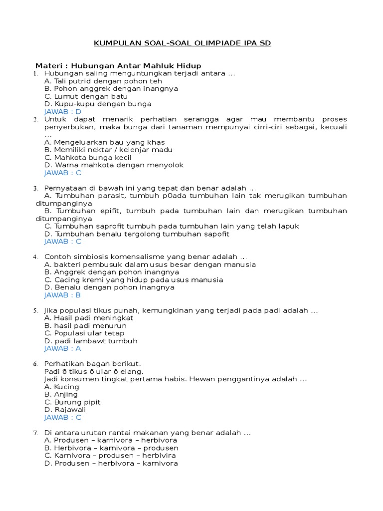 Pelaksanaan olimpiade sains nasional osn tahun 2018 tidak lama lagi. Soal olimpiade ipa sd by azzahra rahmah posted on january 4 2020 rumuscoid kali ini kita akan membahas materi tentang soal olimpiade ipa sd tahun 2020 beserta jawabannya terbaru kita akan jabarkan secara detail dan lengkap dari soal soal olimpiade ipa sd tahun terbaru dan jawabannya terbaru beserta pembahasannya. Demikianlah ulasan yang mengenai kumpulan soal olimpiade ipa sd dan kunci jawabannya. Semoga bermanfaat dan bisa berbagi untuk soal osn jilid keduanya. Soal seleksi osn ilmu pengetahuan alam sesuai dengan materi ipa kelas iv v dan vi serta memuat soal ipa berbahasa inggris maksimal 20 dari banyaknya soal. Pemerintah melakukan usaha peningkatan mutu pendidikan dengan mengembangkan osn sd tahun 2020 sekarang berganti.