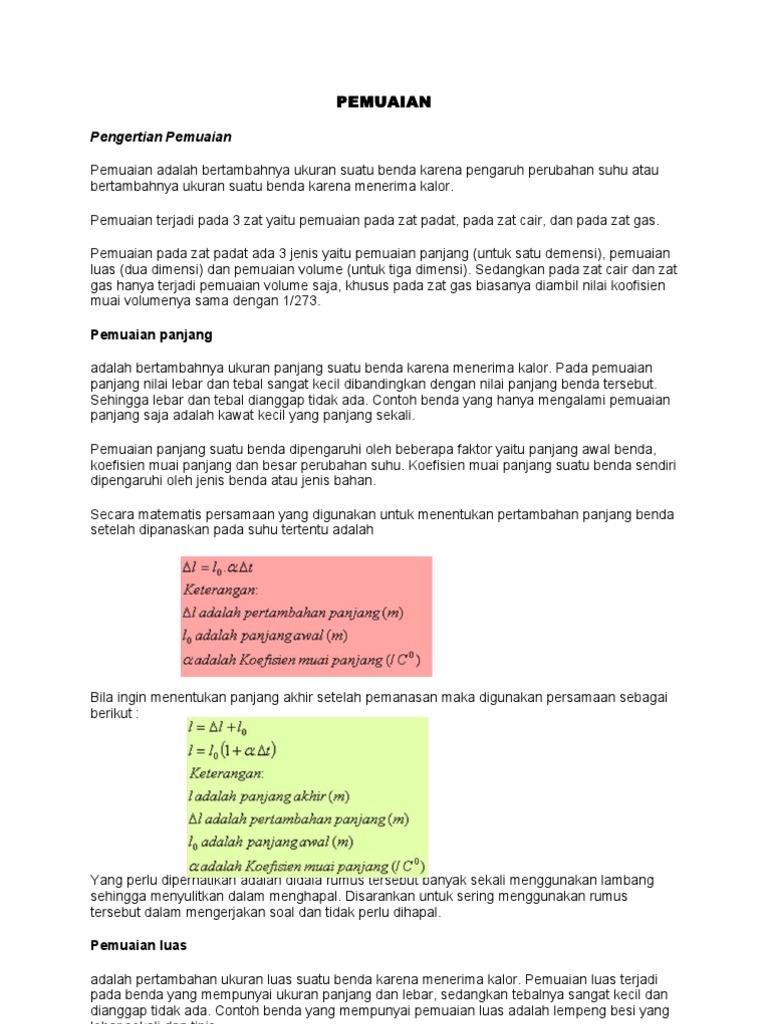 Pemuaian Panjang Luas Dan Volume Zat Padat