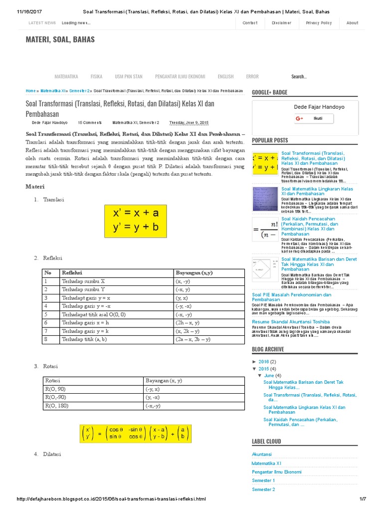Soal Dan Pembahasan Rotasi Perputaran Dengan Matriks