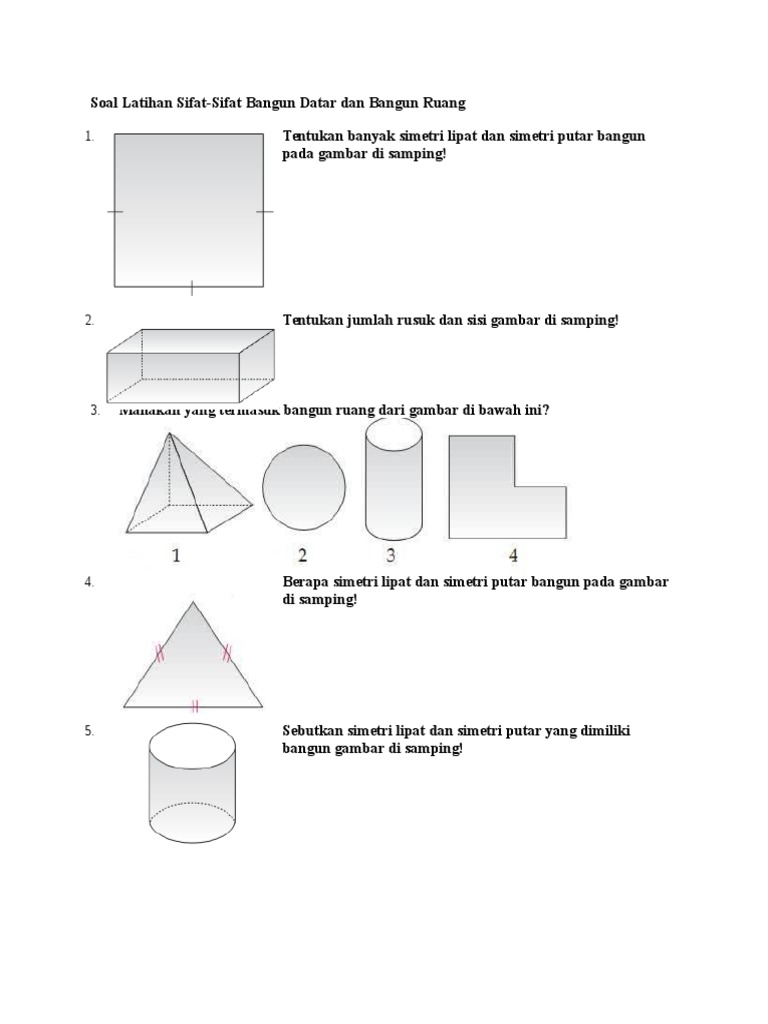 Contoh soal simetri putar. Tentukan berapa jumlah simetri putar pada tiap tiap bangun datar berikut. Zona soal adalah blog pendidikan yang membuat contoh soal ulangan terbaru dan materi pelajaran seperti soal uas 1 dan 2 soal uts 2 dan 1 soal ukk untuk menghadapi ujian sekolah ulangan semester maupun kenaikan kelas. Simetri ini adalah salah satu sifat yang dimiliki oleh bangun datar seperti persegi segi tiga sama sisi segi tiga sama kaki trapesium segi panjang segi enam segi lima jajar genjang layang layang belah ketupat dan lain. Banyaknya simetri yang dimiliki oleh bangun datar di bawah adalah. Baik simetri lipat dan simetri putar termasuk dalam salah satu sifat pada bangkit datar tersebut. Berikut ini adalah contoh latihan soal uts matematika kelas 3 semester 2 terbaru tahun ajaran 20172018.