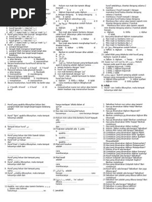 Contoh soal tajwid dan jawaban. Contoh file soal uts lengkap kelas 1 6 sdmi semua mata pelajaran 20162017 berikut ini adalah kumpulan dari berbagi sumber tentang contoh soal ulangan tajwid yang bisa gunakan untuk bank soaldownloadsd dan diunduh secara gratis dengan menekan tombol download biru dibawah ini. Yang dinamakan gunnah musyaddadah ialah setiap huruf nun atau mim yang bertasydid dalam ilmu tajwid namanya gunnah musyaddadah. Guru sd smp sma soal tajwid kls 6 pilihan ganda. Yang dinamakan idghom mutamasilain ialah huruf sukun bertemu huruf yang sama makhroj dan sifatnya. Apa yang dinamakan idghom mutamasilain. Namun pagar bawean juga menyiadakan soal bagi guru ataupun ustad yang membutuhkan sebagai contoh soal tajwid atau kumpulan soal lainnya.