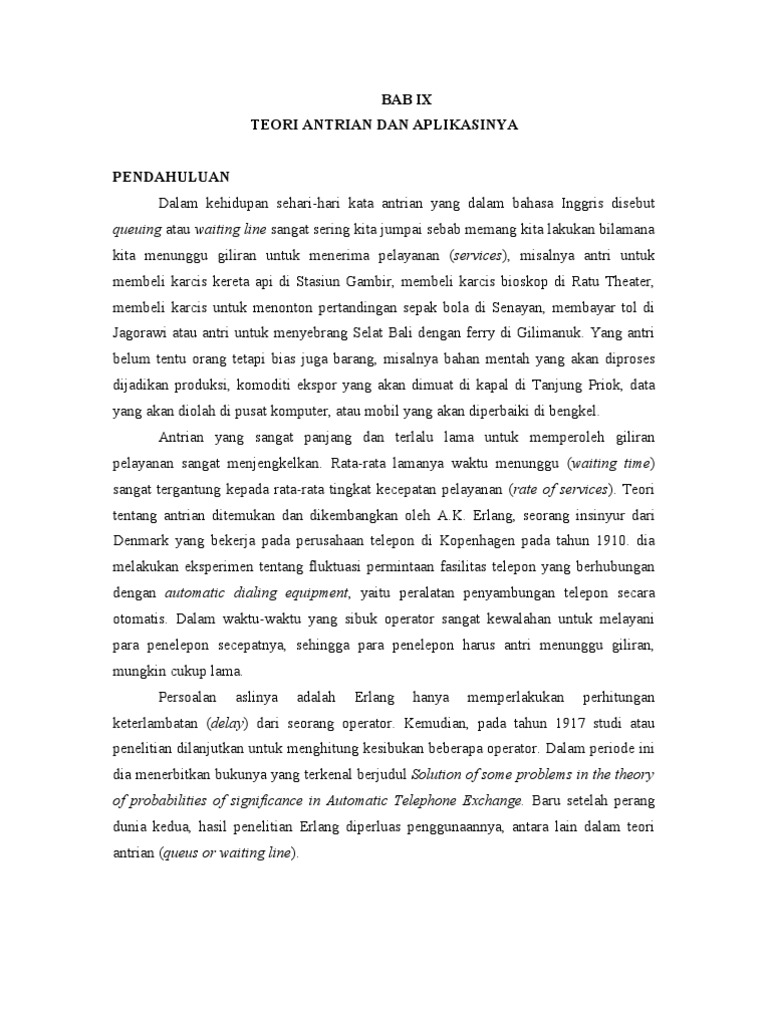 Contoh soal teori antrian khusus poisson 1. Tugas contoh soal model antrian dan penyelesaiannya. Setelah karakteristik operasi sebuah system antrian dihitung maka sangat penting untuk melakukan sebuah analisis ekonomis. Poisson distributed arrivals and exponentially distributed service time sebuah perusahaan yang menyewakan furniture mempunyai satu gudang dengan satu mesin pengangkut yang dioperasikan oleh satu kelompok yang terdiri dari tiga orang tenaga kerja. Bab i diposting oleh 5a. Contoh soal sistem antrian pelayanan tunggal.