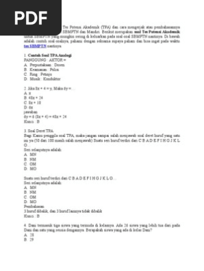 Tes akademik polri atau sering disebut tes potensi akademik tpa polri merupakan bagian penting dalam seleksi masuk polri. Pukul 10900 am beri tanggapan. Latihan soal tes potensi akademik tpa kode soal. Tpa yang mempunyai kepanjangan tes potensi akademik adalah sebuah tes yang bertujuan untuk mengetahui bakat dan kemampuan seseorang di bidang keilmuan. Posted in umum tagged materi sbmptn saintek 2019 pdf materi sbmptn soshum 2019 pdf. Contoh soal tpa terbaru dan terlengkap yang disertai dengan trik jitu untuk menjawab dengan tepat dan benar.
