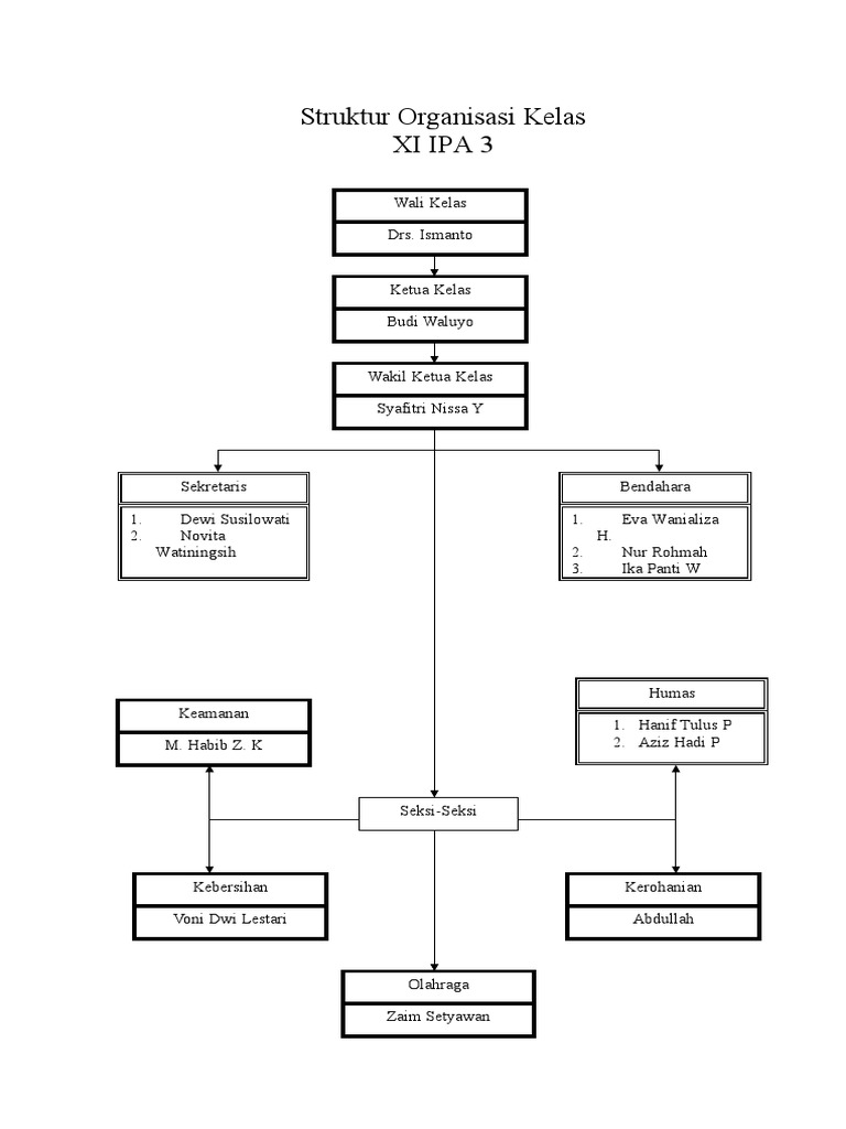 Admin blog berbagai struktur penting 2019 juga mengumpulkan gambar gambar lainnya terkait cara membuat struktur organisasi kelas yang unik dibawah ini. Contoh struktur organisasi kelas di sekolah kelas merupakan organisasi terkecil yang berada di suatu sekolah. Ini versi warna putih cocok untuk kelas yang bernuansa gelap atau terang sehingga kontras dengan dinding yang ada namun tetap memberikan kesan unik juga. Miniatur sebuah negara yang dijalankan dalam ruang lingkup yang paling kecil. Template ini dibuat menggunakan microsoft power point jadi sangat gampang untuk merubahnya. Demikianlah contoh struktur organisasi kelas yang bisa anda buat sebagai rujukan saat akan membuat struktur organisasi kelas.