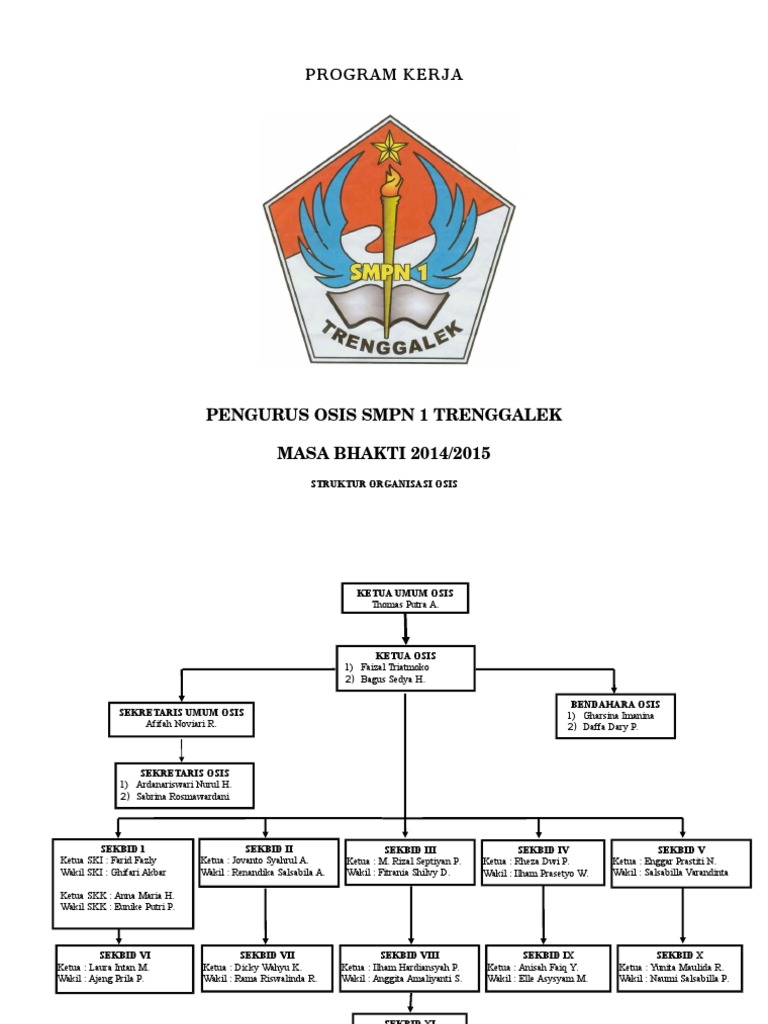 Berikut ini contoh struktur organisasi osis dan tugasnya yang bisa dijadikan gambaran dan bahan referensi. Bagan struktur organisasi osis 1. Memimpin organisasi dengan baik dan bijaksana. Nah itulah penjelasan singkat tentang organisasi osis dan beberapa contoh struktur osis lengkap dengan gambar. Setelah diketahui siapa pemenangnya maka selanjutnya menyusun struktur untuk mengisi setiap seksi. Pengertian dan bentuk bentuk struktur organisasi pengorganisasian merupakan salah satu fungsi dasar dalam manajemen untuk mencapai sasaran yang ditetapkan oleh organisasi.