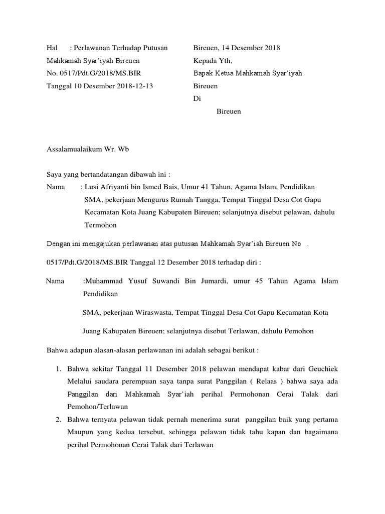 Contoh surat cerai talak doc. Contoh surat permohonan cerai talak oleh suami merupakan surat yang diajukan oleh suami kepada pengadilan agama setempat. Contoh surat gugatan cerai. Ada banyak alasan yang mengharuskan sepasang suami istri untuk bercerai dan berpisah tergantung dari permasalahan keluarga masing masing. Terimakasih telah setia membaca artikel dari kami. Academiaedu is a platform for academics to share research papers. Identitas pihak pertama yang meminta cerai poin selanjutnya adalah menyebutkan identitas diri secara jelas pihak pertama atau pihak yang meminta perceraian.