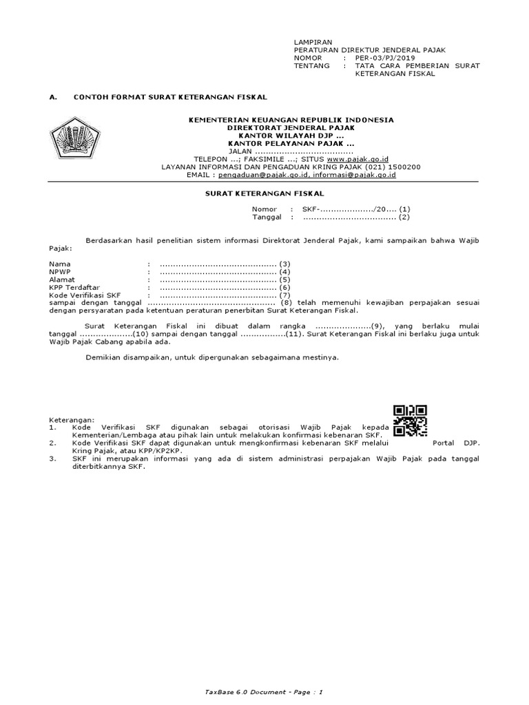 Termasuk dalam hal ini ialah surat keterangan terbaru selengkapnya bisa anda lihat di bawah ini. Surat keterangan fiskal skf adalah surat keterangan yang diterbitkan oleh direktorat jenderal pajak melalui kantor pelayanan pajak tempat wajib pajak terdaftar yang berisi keterangan mengenai pemenuhan kewajiban perpajakan wajib pajak untuk masa pajak dan tahun pajak tertentu. Skf adalah adalah surat yang diterbitkan oleh direktur jenderal pajak yang berisi keterangan mengenai pemenuhan kewajiban perpajakan wajib pajak untuk masa pajak dan tahun pajak tertentu untuk dapat mengikuti penawaran barangjasa di instansi. Skf digunakan untuk memenuhi persyaratan mendapatkan pelayanan tertentu danatau pelaksanaan kegiatan tertentu dari kementerianlembaga atau pihak lain. Komunikasi iainnya melalui surat resmi. Tatacara pendaftaran npwp danatau pkp perubahan data dan pemindahan wp dan atau pengusaha kena pajakbaru.