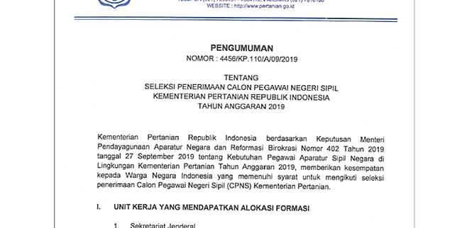 Formasi cpns kementerian pertanian. Surat lamaran dibuat oleh pelamar boleh diketik maupun ditulis. Sebagian besar instansi menyediakan format surat lamaran yang bisa diunduh atau di download dan diisi para pelamarada yang menyertakan dalam tautan terpisah ada yang melampirkannya bersama. Membuat surat lamaran cpns bagi yang belum pernah memang sedikit susah. Permenpan nomor 24 tahun 2019 tentang nilai ambang batas pengadaan calon pegawai negeri sipil tahun 2019. Surat pernyataan penempatan cpns.