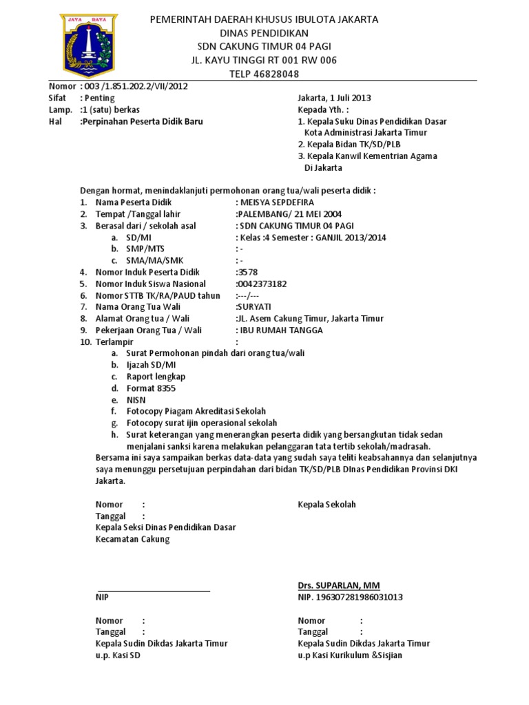 Contoh surat mutasi siswa. Selengkapnya sebagai contoh silahkan diunduh format mutasi siswa dibawah ini. Baik surat permohonan pindah dari orang tua siswa surat keterangan pindah sekolah dari madrasah asal maupun surat keterangan telah menerima siswa pindahan. Notaris cendraningsih rahayu wibisono sh mh. Sehingga bisa jadi banyak beredar format surat yang bisa saja agak berbeda antar satu daerah dengan daerah lainnya. Sebagai pelengkap harus juga dilampirkan rekapitulasi terhadap mutasi siswa yang dibuat. Jika pada aplikasi dapodik sebelumnya menu untuk mencetak surat mutasi siswapeserta didik dapat dengan mudah di cetak langsung di aplikasi dapodik dengan catatan nama peserta didik yang akan di mutasikan sudah dikeluarkan terlebih dahulu di aplikasi dapodik.