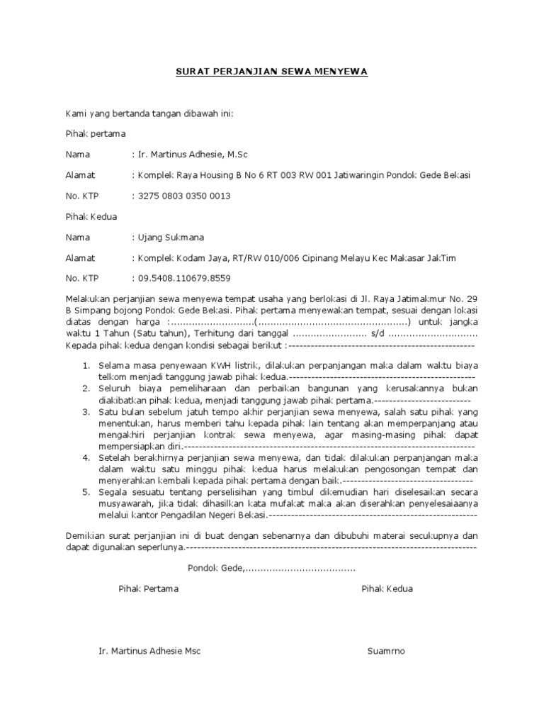 Surat Perjanjian Sewa Menyewa Ruko Pdf لم يسبق له مثيل الصور