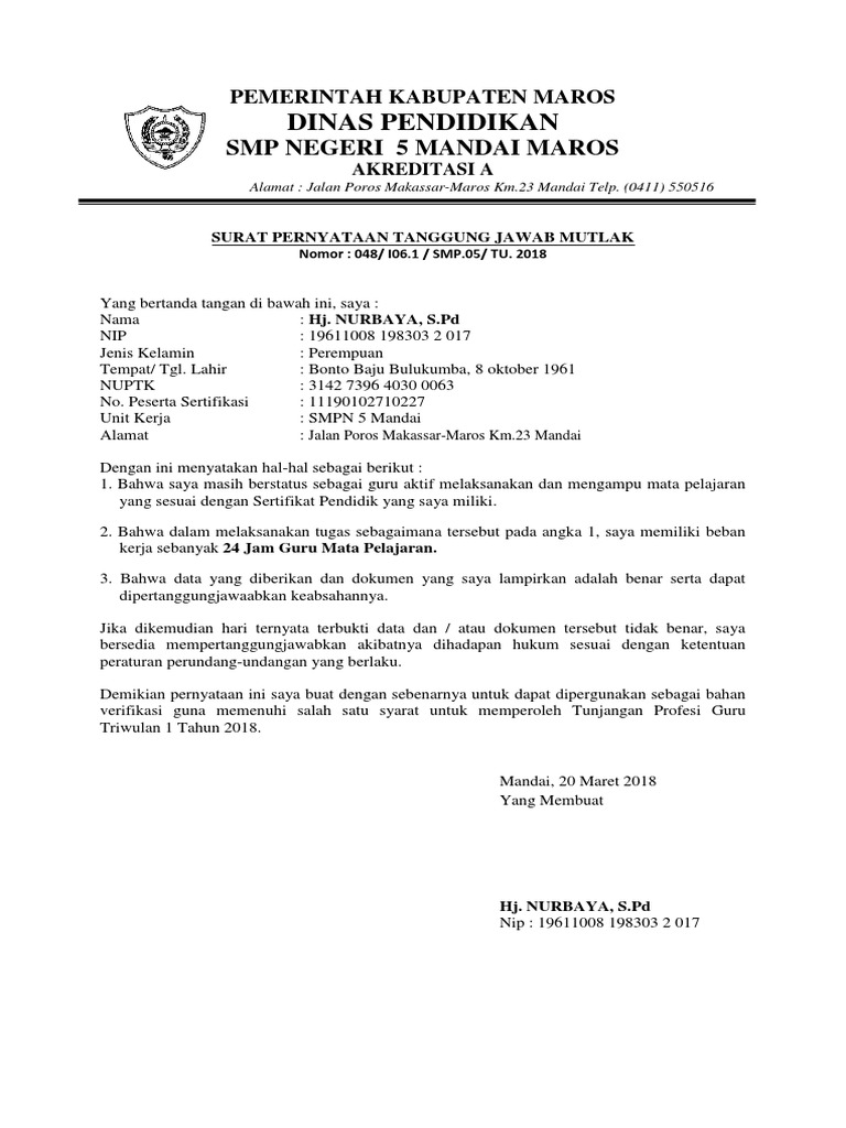 Contoh surat pertanggungjawaban mutlak guru sertifikasi. Dalam surat pertanggungjawaban mutlak sptjm dana bsmpip ini terdapat 4 poin yaitu. Contoh surat pertanggungjawaban keabsahan mutlak dokumen untuk pendaftaran sekolah. Contoh surat pernyataan tanggung jawab mutlak sptjm atau fakta integritas ditulis andri suhendri kamis 05 april 2018 edit. Demikian surat pernyataan tanggung jawab mutlak ini saya buat untuk dapat digunakan sebagaimana mestinya. Demikian tentang contoh surat pernyataan tanggungjawab mutlak sptjm kepala sekolah untuk persyaratan penerimaan tunjangan profesi guru sertifikasi 20192020. Contoh surat pertanggungjawaban mutlak sptjm dana bsmpip surat pertanggungjawaban mutlak sptjm ini ditanda tangani oleh kepala sekolah serta diberi stempel sekolah.