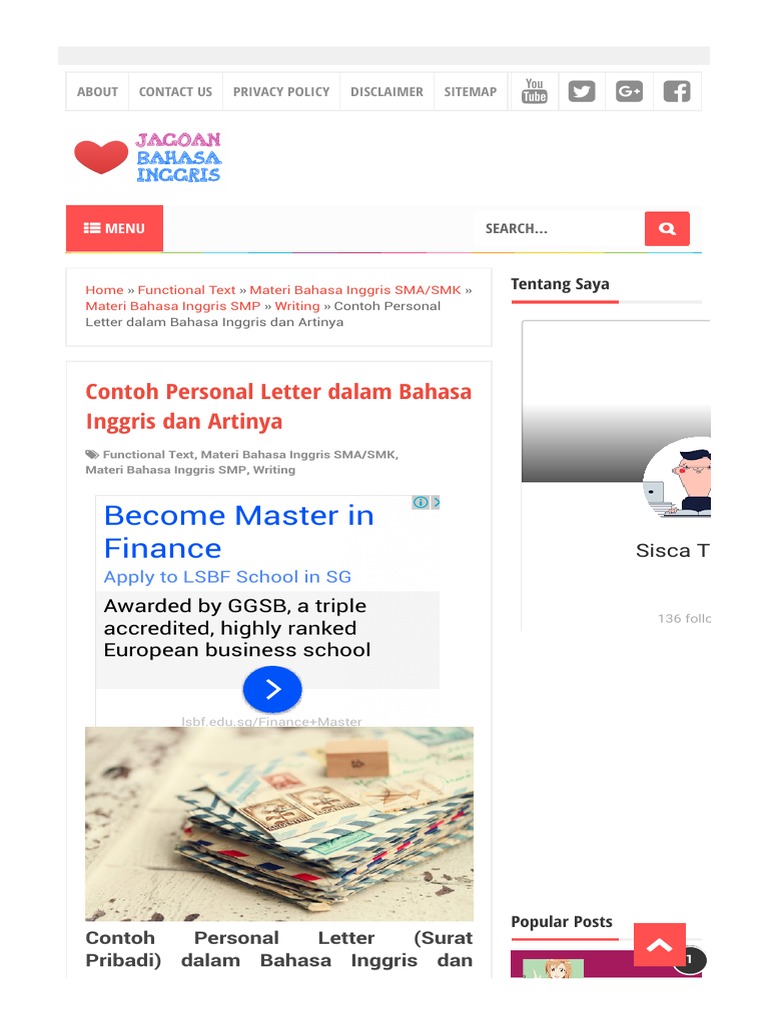 Okee tanpa basa basi lagi mari kita langsung saja simak contoh surat pribadi dalam bahasa inggris beserta terjemahannya berikut ini. Contoh surat pribadi bahasa inggris dan terjemahannya. Hal terpenting yang harus diperhatikan pada saat membuat surat lamaran kerja berbahasa inggris adalah bahasa yang formal format yang benar dan tata cara penulisan yang baku baik dan benar. Contoh surat pribadi dalam bahasa inggris dan terjemahan kali ini akan membantu kalian lebih mudah dalam membuat surat dalam format bahasa inggris dimana memang dalam sebuah soal biasa keluar materi surat pribadi dan pertanyaan yang umum mungkin akan menyuruh kalian identifikasi dalam sisi tata penulisan dan maksud dari surat tersebut. Sebelumnya kbi telah membahas cara mudah menulis surat dan email dalam bahasa inggrispada kesempatan ini kbi akan memberikan contoh sederhana surat resmi formal letter dalam bahasa inggristentunya surat resmi digunkan di instansi instansi resmi seperti perusahaan sekolah pemerintah. 25 contoh pengalaman pribadi singkat dalam bahasa inggris beserta artinya contoh pengalaman pribadi recount text pendek singkat dalam bahasa inggris dan artinya pada artikel kali ini akan berbentuk text pendek singkat bertema cerita liburan dan tentang pengalaman pribadi yang tak terlupakan lainnya.