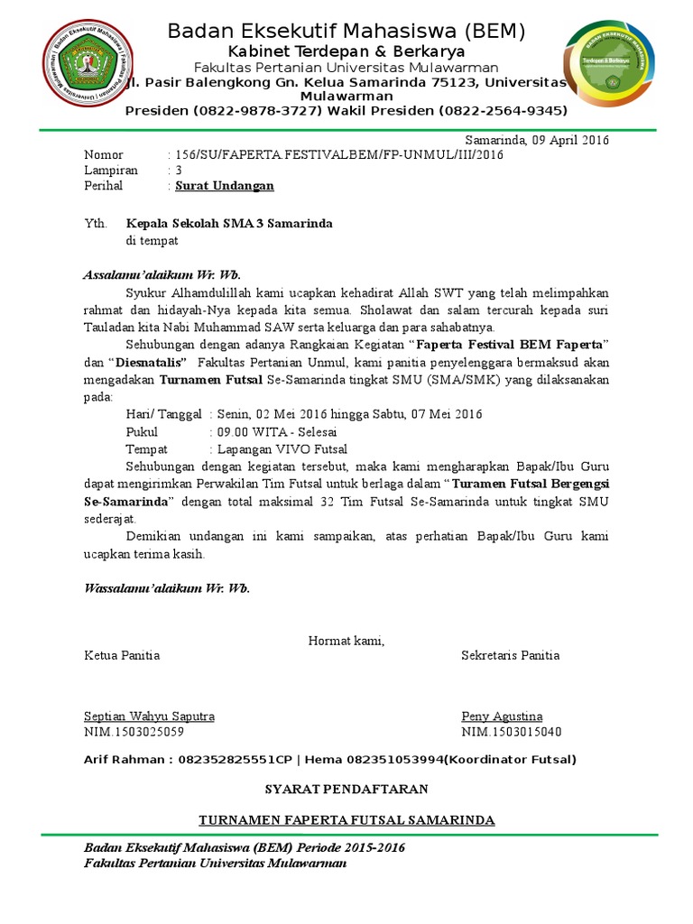 Maka dari itu surat dinas sekolah disebut dengan salah satu contoh surat resmi. Contoh surat undangan rapat anda tentu pernah menghadiri sebuah acara rapat entah rapat rt rapat karang taruna rapat acara kepanitiaan rapat dengan klien di perusahaan rapat direksi dan lain lain. Diantara banyak surat yang sering masuk maupun keluar adalah surat pemberitahuan. Seperti kegiatan sebuah perlombaan yang diadakan organisasi ekstrakulikuler di sekolah yang dimana sebelum mereka mengadakan perlombaan harus memiliki surat resmi yang akan diajukan kepada kepala sekolah sebagai permohonan dan menerangkan bahwa organisasi tersebut. Siang ini admin kembali akan memberikan contoh surat undangan terbaru untuk anda. Surat resmi tersebut berfungsi untuk memberikan informasi kepada pihak lain atau instansi yang terkait.