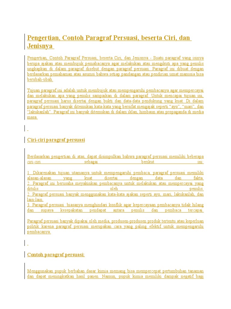 Contoh teks persuasif tema pendidikan2. Contoh teks persuasif pasti anda sudah sering mendengar bukan bahwa buku adalah jendela dunia. Teks persuasi kali ini kita akan membahas pengertian teks persuasi ciri syarat jenis kaidah dan contoh teks persuasi lingkungan propagandahoaxpolitik pendidikan agama kesehatan. 9 contoh paragraf persuasi singkat dan penjelasannya pada kesempatan kali ini saya akan membuat artikel mengenai contoh paragraf persuasi singkatuntuk melengkapi artikel dan memperjelas pemahaman akan saya tuliskan juga mengenai pengertian paragraf persuasi jenis paragraf persuasi dan juga ciri ciri paragraf persuasi. Contoh persuasi propaganda persuasi propaganda merupakan paragraf persuasi berupa imbauan yang disampaikan dengan keras dan jelas guna membuat pembaca mau mengikut imbauan yang disampaikan. Contoh teks persuasif tema propaganda3 contoh teks persuasif politik4.