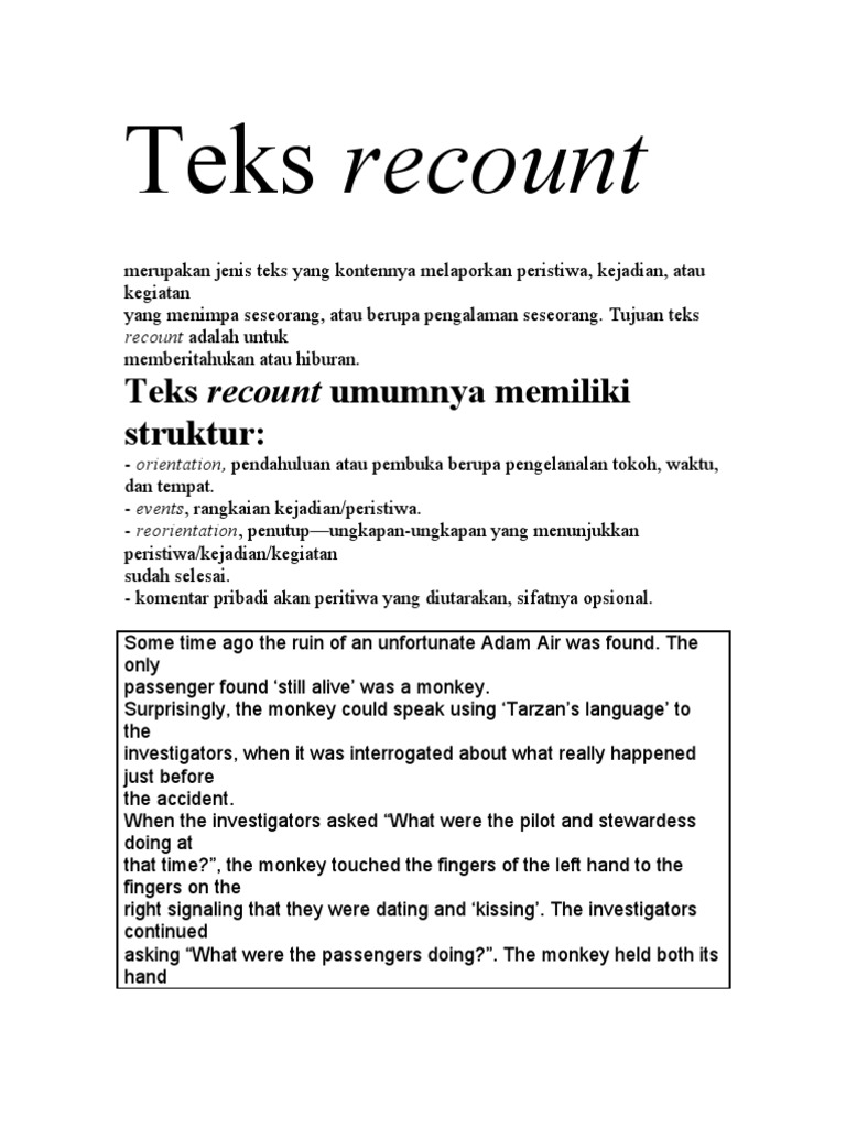 Semua contoh recount text yang kami sajikan lengkap beserta arti dan terjemahan dalam bahasa indonesia. Contoh text recount di bawah terdiri dari beberapa contoh.