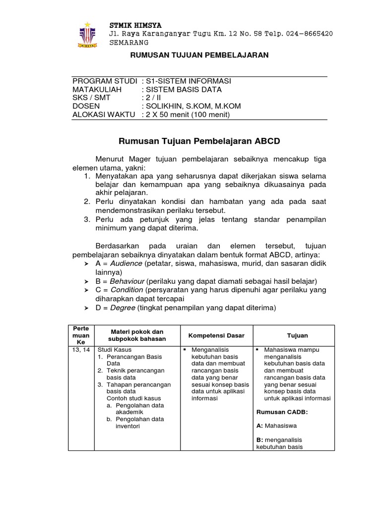 Contoh Tujuan Pembelajaran Abcd Dalam Rpp