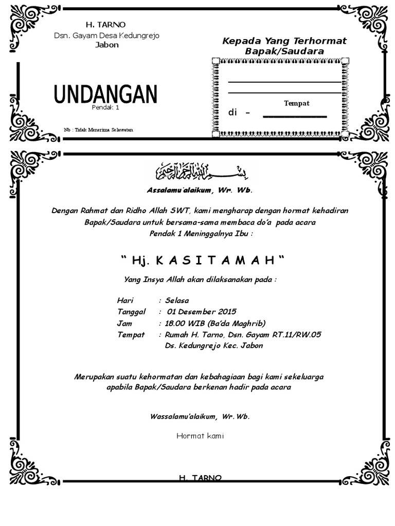 Contoh Surat Undangan Tahlil 40 100 1000 Hari Haul