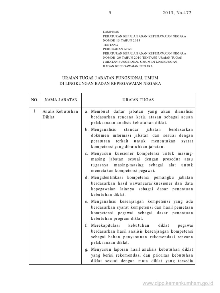 Negara nomor 13 tahun 2013 tentang perubahan atas peraturan kepala badan kepegawaian negara nomor 26 tahun 2010 tentang uraian tugas jabatan fungsional umum di lingkungan badan kepegawaian negara. Mengkordinir dan memonitor tata usaha pengarsipan agenda dan distribusi surat 2. Memberi kartu kendali dan memberkaskan surat 3. Tanggung jawab tugas pokok produk pokok uraian jabatan identitas jabatan nama jabatan rincian jabatan. Melaksanakan pengarsipan surat 4. Jabatan adalah kedudukan yang menunjukan tugas tanggung jawab wewenang dan hak seorang pns dalam suatu satuan kerja organisasi negara.