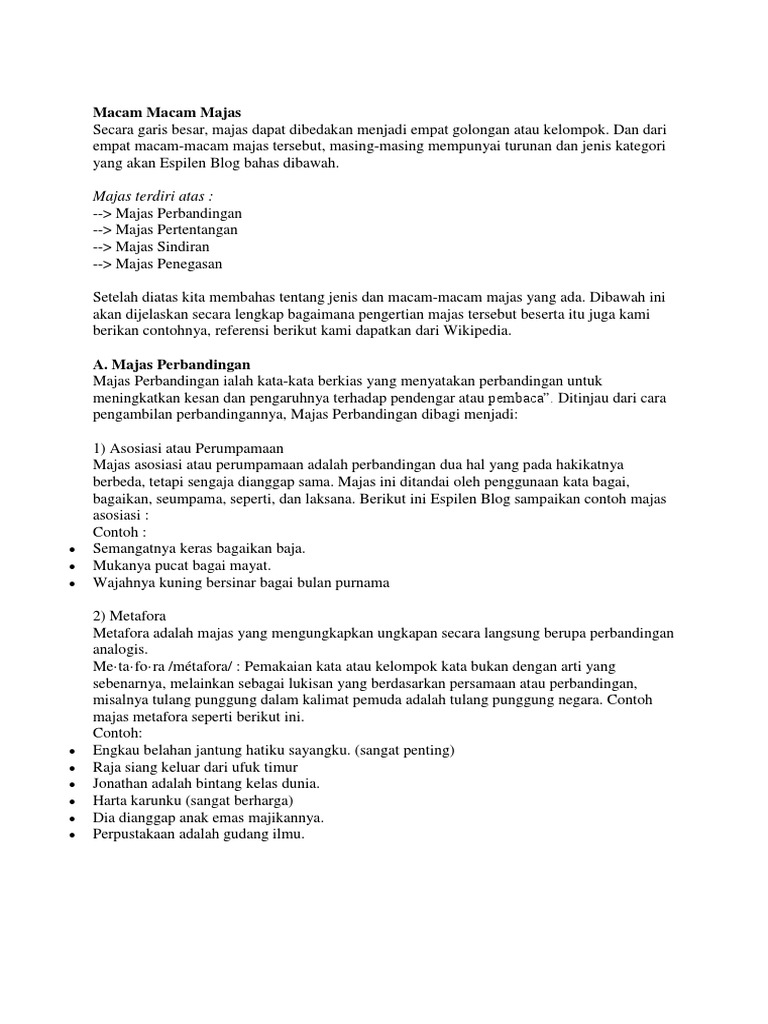 Untuk anda yang masih bersekolah pasti sudah tidak asing lagi dengan kata majas. Macam macam majas dan contoh. Majas biasanya digunakan dalam bentuk tulisan atau lisan.